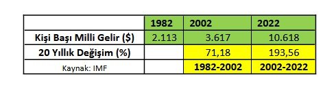 Önce bir Türkiye’nin 2002 öncesindeki yirmi yılına bakalım. Veriler aşağıda.
