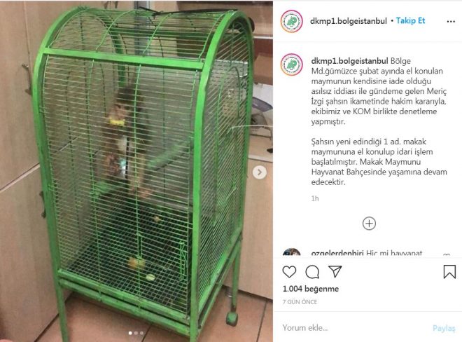 Maymun daha sonra Doğa Koruma ve Milli Parklar Müdürlüğü'ne teslim edilmişti.