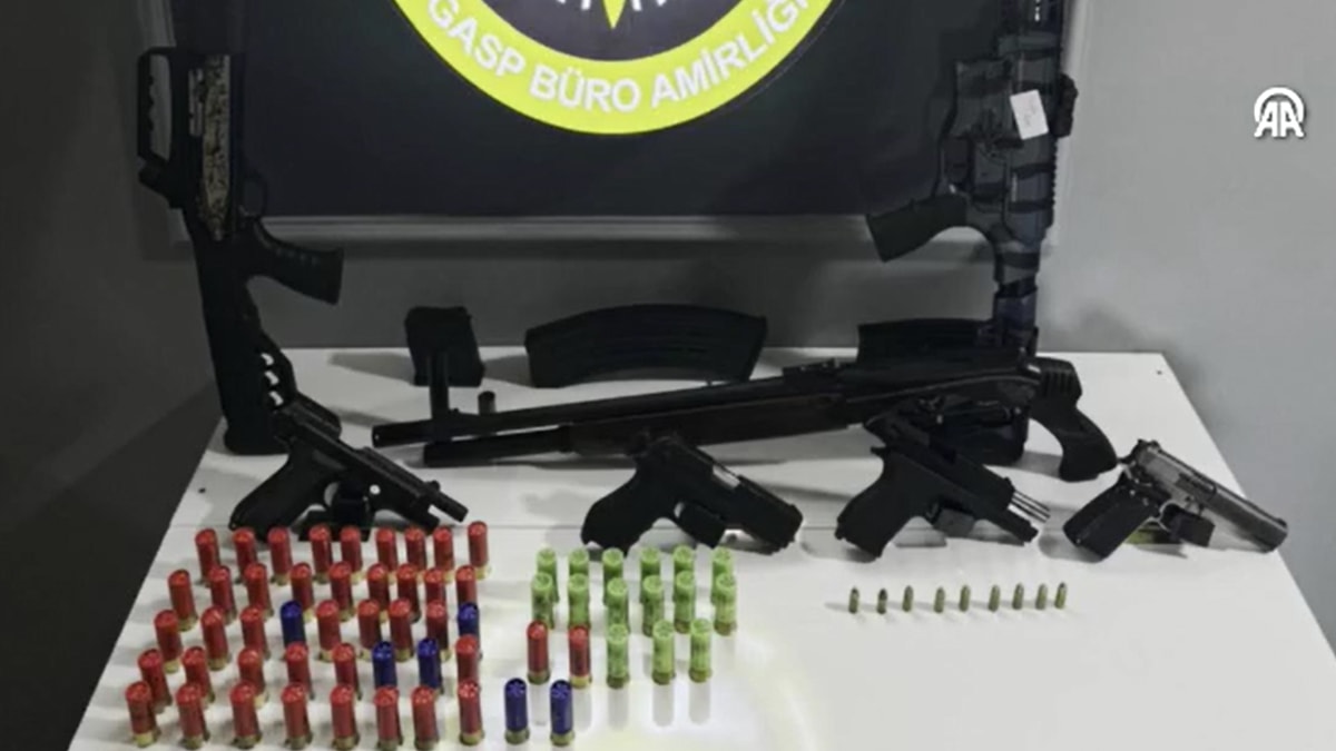 Şüphelilerin ikamet, araç ve iş yerlerinde yapılan aramalarda, 1 ruhsatsız tabanca, 3 kurusıkı tabanca, 3 pompalı tüfek, bu silahlara ait 7 şarjör, 62 kartuş ile 9 fişek ele geçirildi.