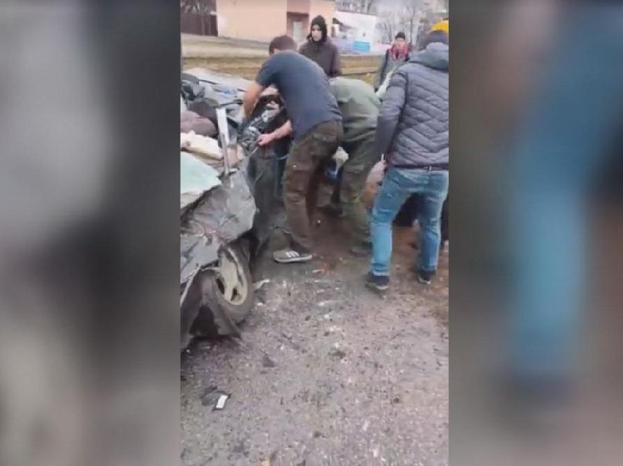 Paylaşılan videolardan birinde ise tankın ezdiği aracın içinden bir adamın çıktığı görülüyor. Bölgedeki Ukraynalılar adamı kurtarmaya çalışırken orta yaşlı adamın sağlık durumu ile ilgili bir bilgi verilmiyor. İkinci videoda Ukraynalılar ellerinde çekiçlerle adamı kurtarmaya çalışırken görülüyor.