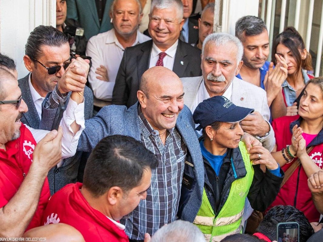 9 Eylül’deki görkemli kutlamanın ardından Cumhur İttifakı’nın hedef tahtasına koyarak sert eleştiriler yaptığı ve İçişleri Bakanlığı’nın üç ayrı soruşturma izni verdiği İzmir Büyükşehir Belediye Başkanı Tunç Soyer’e işçiler de sahip çıktı. Binlerce belediye işçisi Başkan Soyer’e destek mitingi yaptı.