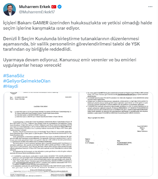 "İçişleri Bakanı GAMER üzerinden hukuksuzlukta ve yetkisi olmadığı halde seçim işlerine karışmakta ısrar ediyor.