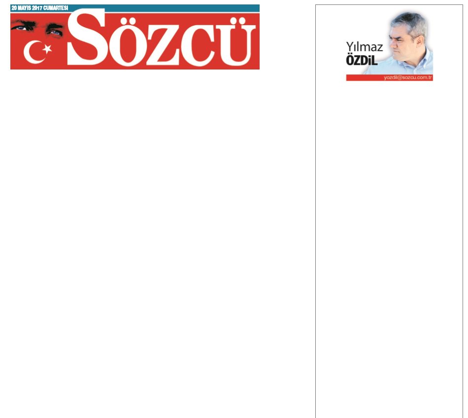 Sözcü, bugün 19 Mayıs Basın Özgürlüğü özel sayısıyla okurlarının karşısına çıktı. Ve 'Sözcü'süz Türk basının ne anlama geldiğini ortaya koydu... İşte; Emin Çölaşansız, Yılmaz Özdilsiz, Uğur Dündarsız, Bekir Coşkunsuz, Saygı Öztürksüz, kısacası 'boş' bir gazete ve yazarsız Türk basınının ibretlik örneği...