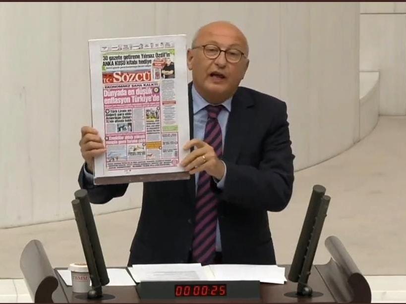RTÜK’ün mahkemelerin kararlarına rağmen televizyon kanallarına haksız, hukuksuz cezalarını sürdürdüğüne dikkat çeken CHP’nin gazeteci kökenli Eskişehir Milletvekili Utku Çakırözer, SÖZCÜ'nün 'pembe manşeti'ni Meclis gündemine taşıdı. Çakırözer, "Amaç seçimlere giderken basını da, muhalefeti de, halkı da susturmak. Ama olmuyor, olmayacak" dedi.