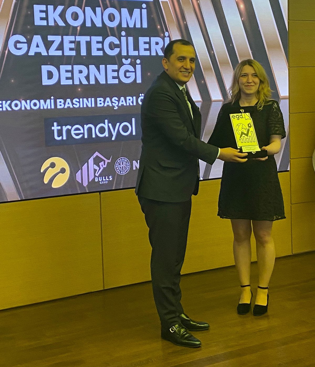 Ekonomi Müdür Yardımcısı Taylan Büyükşahin’e ödülünü İDDMİB Başkanı Çetin Tecdelioğlu verdi.EN İYİ HABER VE ÖZEL ÖDÜL