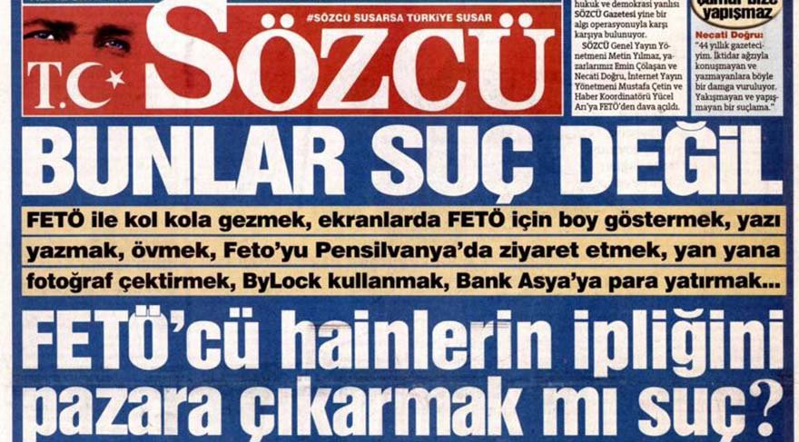 “Sözcü gazetesi yazarlarının ‘Fetullah Gülen terör örgütüne üye olma suçlamasıyla yargılandıkları’ davada mahkum edilmeleri Türk yargı tarihinin gelmiş geçmiş en büyük ayıpları arasında yer aldı. Bir yanda bir yerel gazeteci Fetullah Gülen’e hakaret ettiği için hapis cezasına çarptırılırken, diğer yanda bırakın Fetullah’ı, herhangi bir dinci yapının yakınından geçmesi mümkün olmayan Emin Çölaşan, Necati Doğru gibi isimler ‘Gülen örgütüne yardım ve yataklıktan’ mahkum oluyor. Buna karşılık örgütün tam göbeğinden yer alan isimler hem ticarette hem siyasette hem bürokraside aslanlar gibi yollarına devam ediyorlar. Hatta saraylara girip çıkıyorlar. Bu artık bir trajedi değil, bir komedidir.”