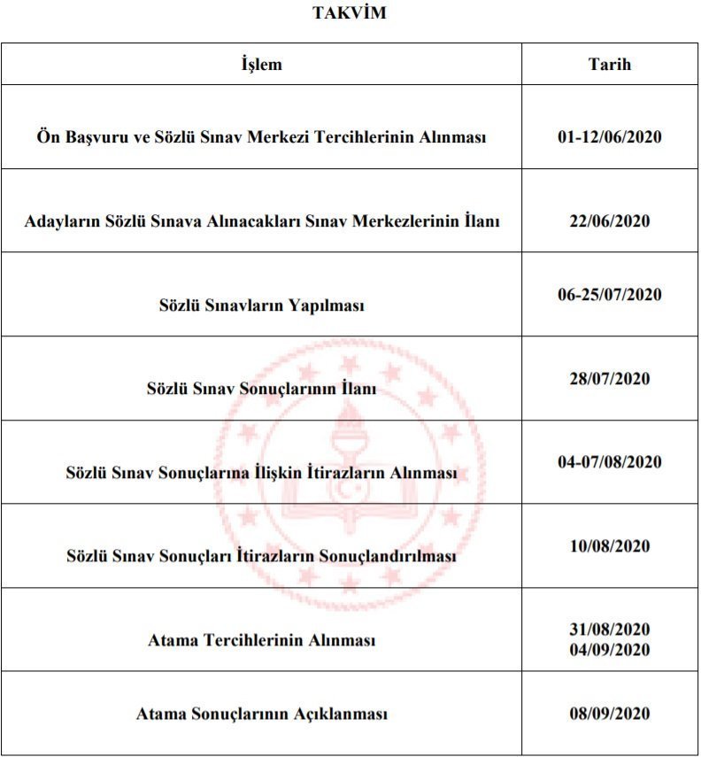 2020 Haziran ayında yapılacak olan sözleşmeli öğretmen atama kontenjan listesi yayımlandı.