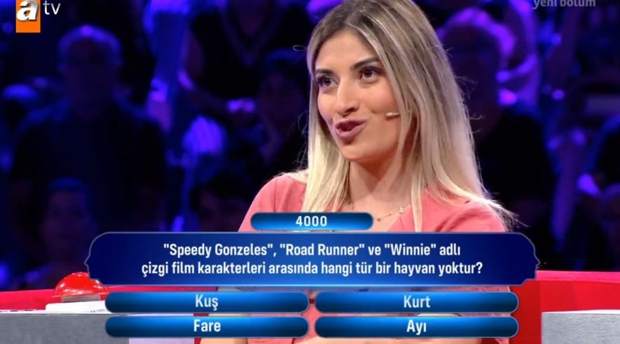 Güven Bana programında iki yarışmacıya "Speedy Gonzeles, Road Runner, Winniwe adlı çizfilm karakterleri arasında hangi tür hayvan yoktur? " sorusu soruldu.