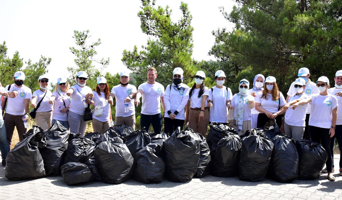 Gönüllü öğretmenler tarafından toplanan 20 poşet çöp, Manisa Büyükşehir Belediyesi bağlı işçiler tarafından kamyona yüklenerek atık tesisine gönderildi.