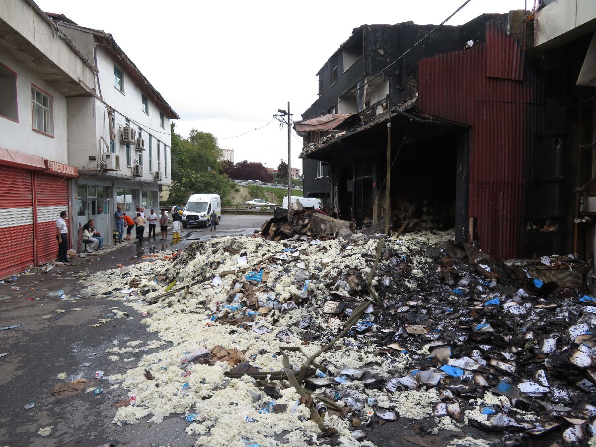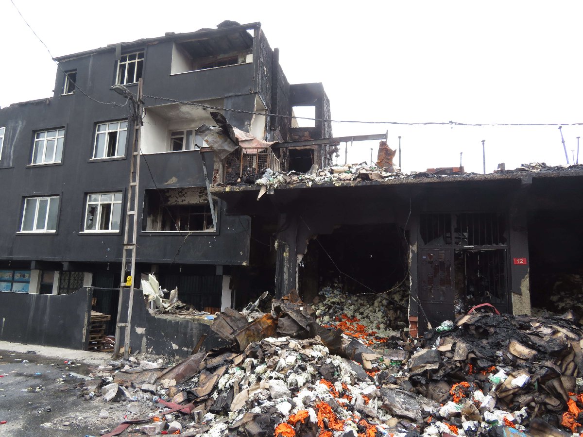 Kent Sokak trafiğe kapatılırken olay yeri inceleme ekipleri de yangından etkilenen bölgede delil çalışması yürüttü.