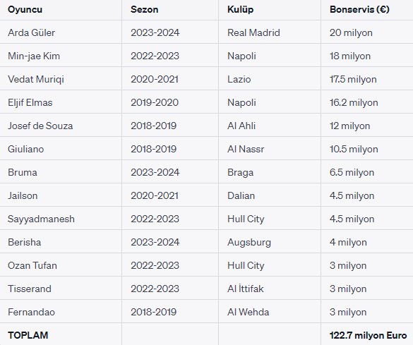 Kanarya hemen her sezon en az bir oyuncuyu Avrupa’ya veya Arap Yarımadası’na yüksek bonservis bedeliyle satmayı başardı; performansını yükselttiği oyuncuların satışından önemli bonservis geliri elde etti. Giuliano, Josef de Souza, Fernandao, Eljif Elmas, Vedat Muriqi ve Min Jae Kim’den sonra Arda Güler de kulübün kasasını doldurarak gitti.
