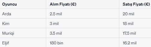 Fenerbahçe, son dönemde 4 futbolcudan büyük kar elde etti. Aziz Yıldırım döneminde 180 bin Euro’ya gelen Eljif Elmas, Koç döneminde 16.2 milyon Euro’ya gitti. Eljif’ten sonra en karlı satılan ikinci oyuncu Arda oldu.