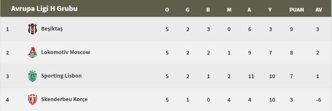 Sporting Lizbon - Beşiktaş maçı, grubun durumunu belirleyecek. Grupta Beşiktaş 9 puana sahip iken 2. sıradaki L.Moskova 8 puanda, 3. sıradaki Sporting Lisbon 7 puana sahip. Sporting Lizbon-Beşiktaş maçı ile birlikte başlayacak olan Skenderbeu Lokomotiv Moskova maçında alınacak sonuçlara göre ilk iki sırayı alacak ve üst tura çıkacak takımlar belli olacak. Beşiktaş'ın tur atlaması için berabere kalması yetiyor. Yenildiği takdirde tur atlaması için L.Moskova'nın yenilmesi veya beraber kalması gerekiyor. İşte Beşiktaş'ın yer aldığı grubun puan durumu;