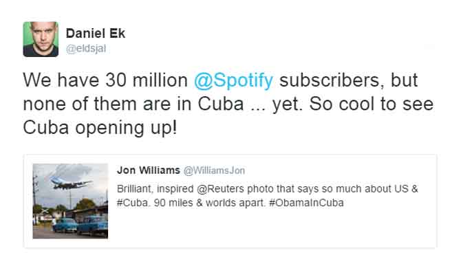 Daniel Ek twitter hesabı üzerinden yaptığı paylaşımda kurucusu olduğu Spotify'ın 30 milyon aboneye ulaştığını bildirdi. Geçtiğimiz yıl Haziran ayında 20 milyon aboneye ulaşmıştı. 1 yıl geçmeden 10 milyon aboneye ulaşan servis mobil cihazlarda, bilgisayarlarda ve Playstation 4'te yer alıyor.