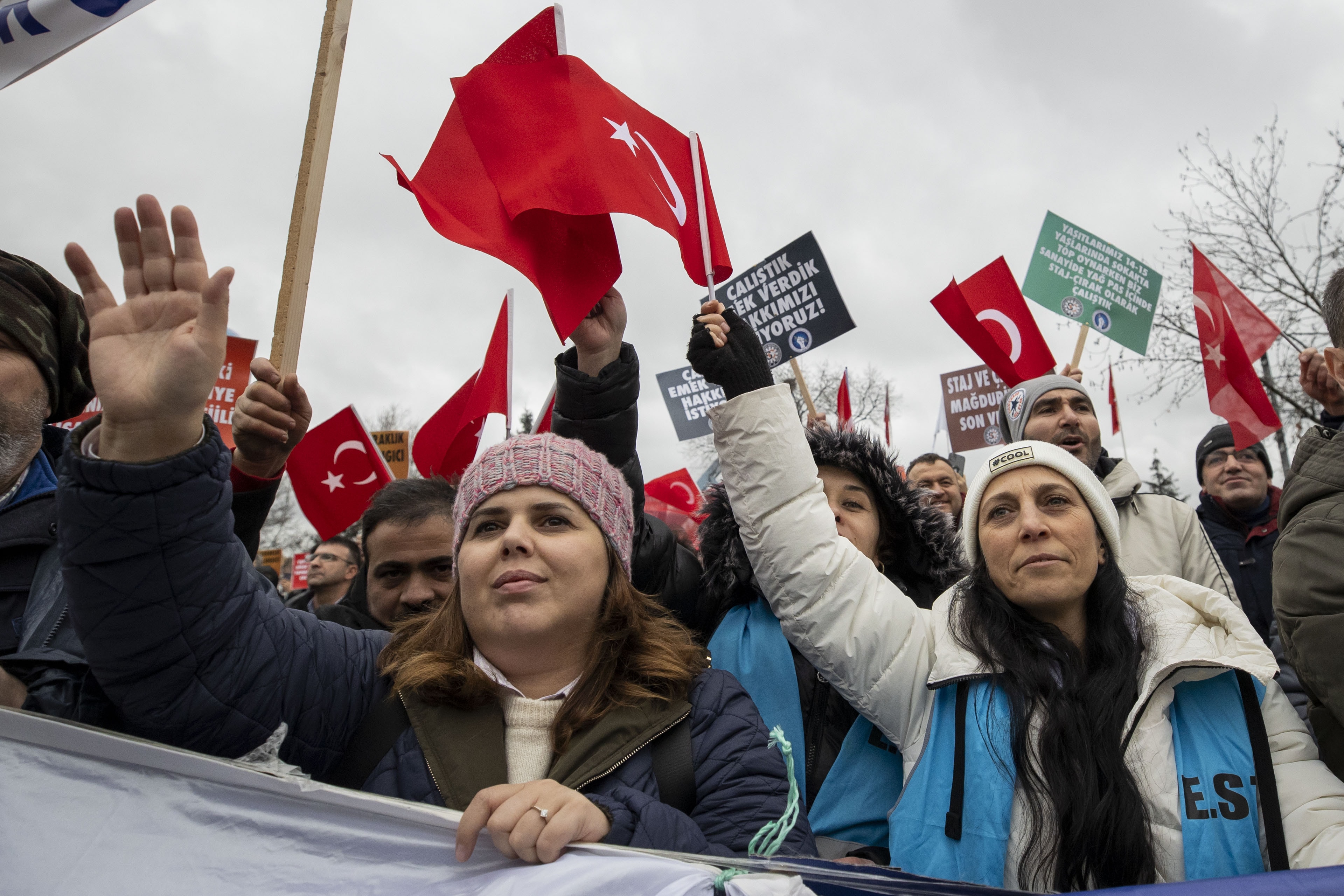Staj ve çıraklık mağdurları Türkiye’nin birçok yerinden bugün Ankara’ya gelerek seslerini duyurmak için Anıtpark'ta miting düzenledi.