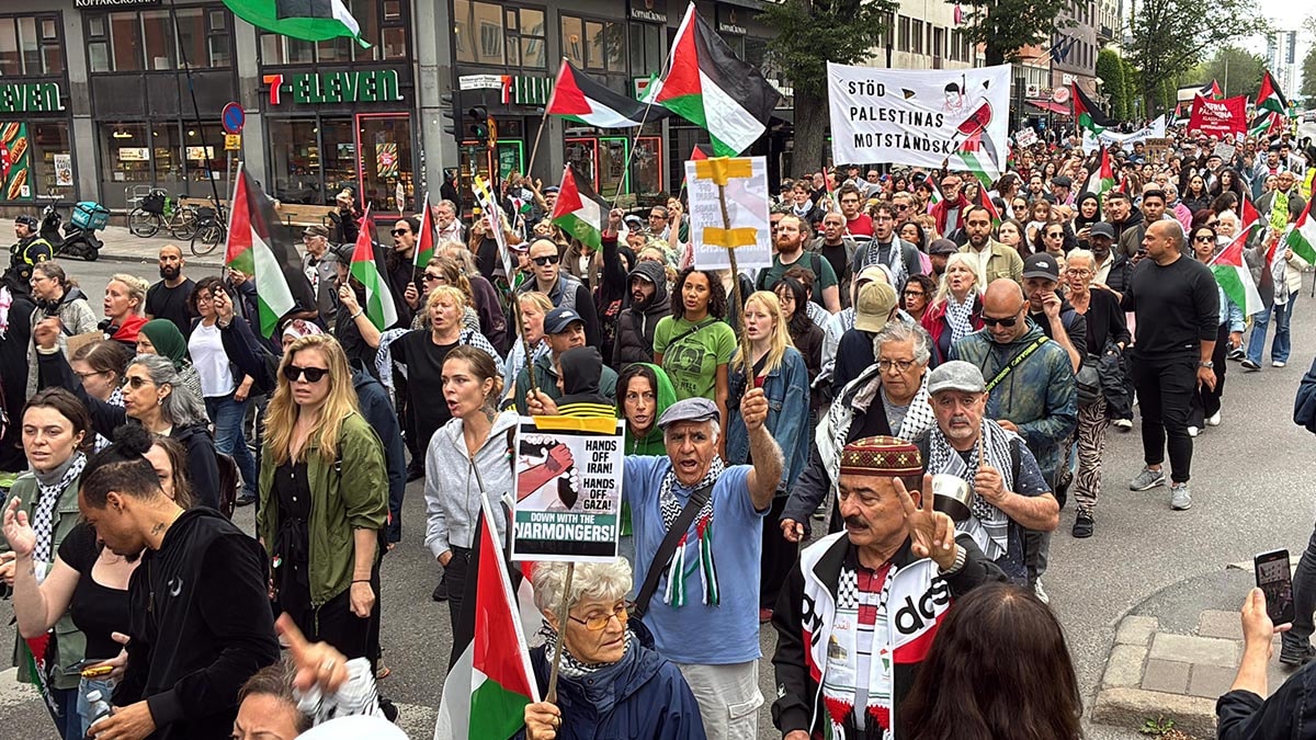 Göstericiler, başkentin merkezi noktalarından Odenplan Meydanı’nda toplandıktan sonra İsveç Parlamentosu’na doğru yürüyüş gerçekleştirdi. Yürüyüş boyunca, “Katil İsrail, Filistin'den defol”, “Gazze’ye acil ve koşulsuz ateşkes” gibi sloganlar atıldı. Protestocular ellerinde Filistin bayrakları taşıyarak, Gazze’de yaşanan insanlık dramına dikkat çekti.