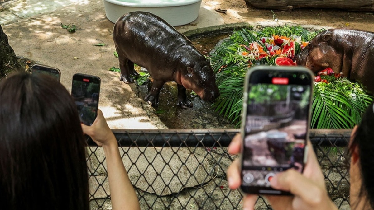 Hayvanat bahçesi yetkililerinin açıklamasına göre, Moo Deng’in doğum günü kutlamalarına Tayland dışından da pek çok ziyaretçi katıldı.