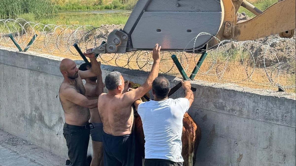 Köylülerin ihbarıyla bölgeye iş makinesi gönderildi. Sulama kanalına giren bölge halkı, danayı halatla bağladı. Kanal kenarındaki Mehmet Karadağ'ın kullandığı kepçeye takılan halatla çekilen dana, kanaldan çıkarıldı. Köylüler, benzer olayların yaşanmaması için kanal çevresinde tedbir alınmasını istedi.