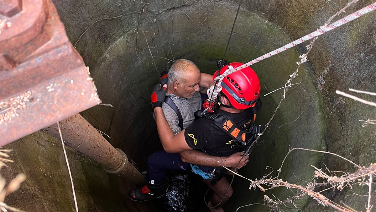 Mersin'in Yenişehir ilçesi 50. Yıl Mahallesi'nde incir toplamaya giden Mehmet Ceylan (56), arazide fark etmediği su kuyusunu düştü.