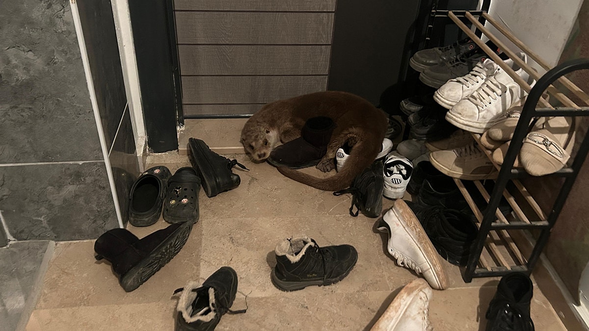 Sivas'ta Şeyh Şamil Mahallesi'nde bulunan 5 katlı apartmana giren su samurunu görenler, durumu Doğa Koruma ve Milli Parklar Şubesi ekiplerine bildirdi.