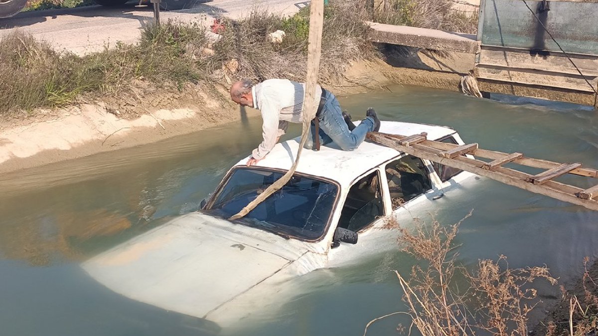 Otomobildeki 5 kişi, yaklaşık bir metre su bulunan kanaldan çevredekilerin yardımıyla çıkarıldı.