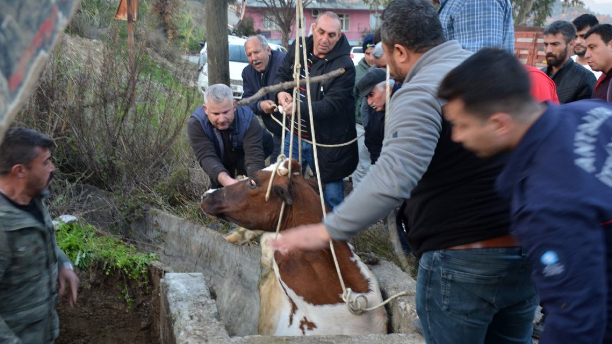 İnek, itfaiye ekipleri ile çevredekilerin çabasıyla ip bağlanarak kurtarılmak istendi. Çukura sıkışan inek, bulunduğu noktadan çıkarılamayınca iş makinesi kullanıldı. İş makinesine iple bağlanan inek, çukurdan çıkarıldı. 1 saatlik çalışmaların ardından kurtarılan ineğin sahibi Hürü Boncuk, gözyaşı dökerek ekiplere teşekkür etti.