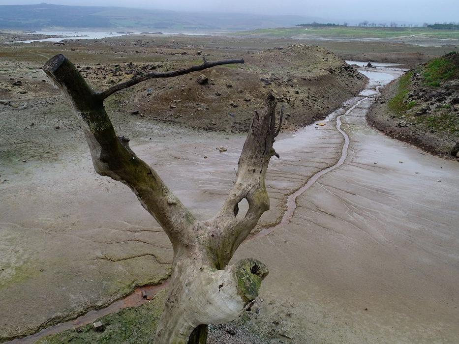 Suların büyük kısmının çekildiği barajın son durumu ise drone ile havadan görüntülendi. Görüntülerde suların çekildiği alanda oluşan kuraklık korkunç tabloyu bir kez daha gözler önüne serdi. Suların çekilmesi ile birlikte haritalarda mavi olarak görülen baraj alanın adeta çöle döndüğü görüldü.