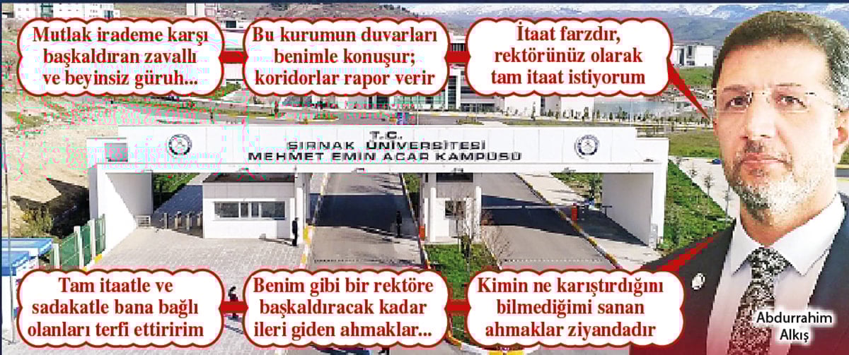 Şırnak Üniversitesi’nde adrese atama iddiaları rektörün sosyal medya paylaşımıyla ileri bir boyuta taşındı. Rektör Abdurrahim Alkış, süresi 31 Aralık’ta dolacak ilana “kendisine itaat edenleri” atayacağını duyurarak kazananları isim isim açıkladı. “Benim mutlak irademe başkaldıran beyinsiz güruh” diyen Alkış, “YÖK’ten tam destek aldığını” söyledi.