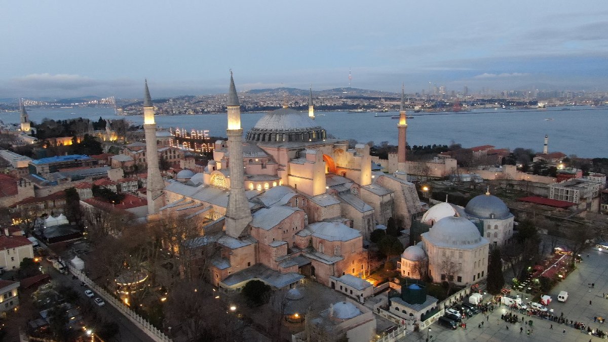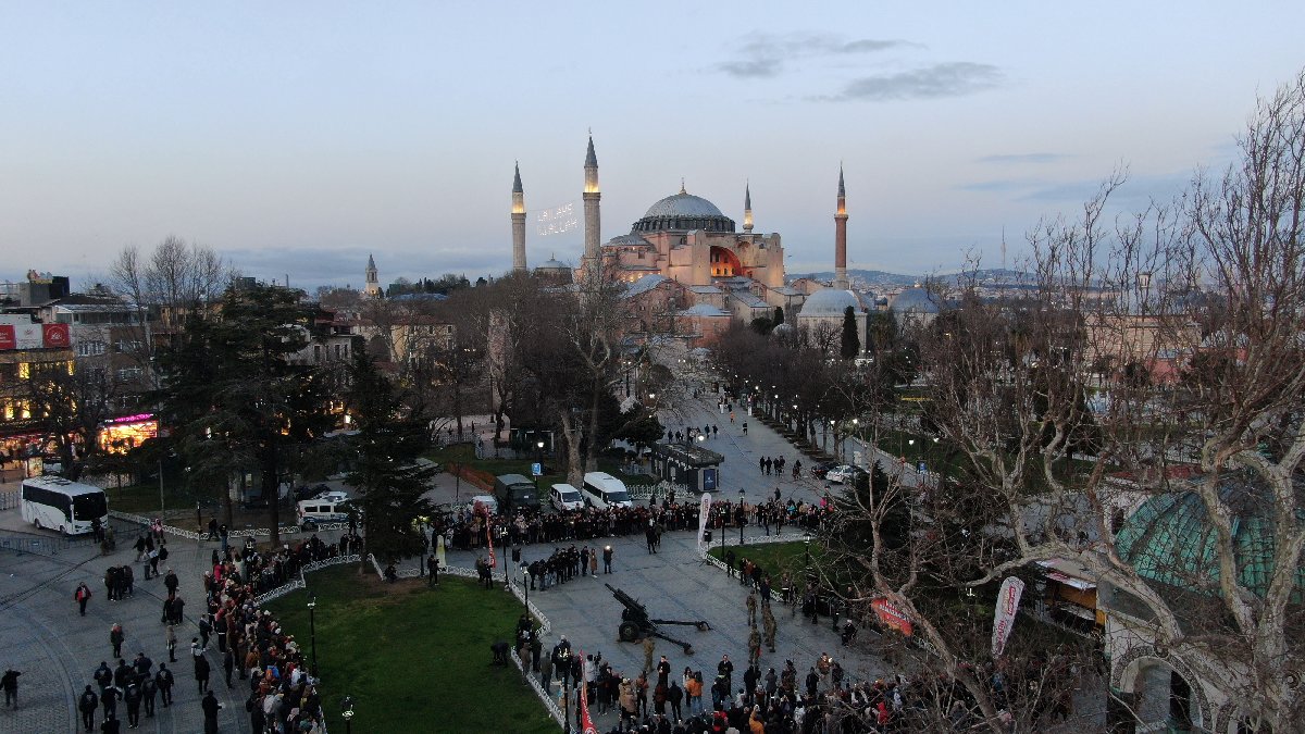 Ramazan ayının ilk iftarında Ayasofya Camii'nin çevresi ve Sultanahmet Meydanı havadan da görüntülendi. (DHA)