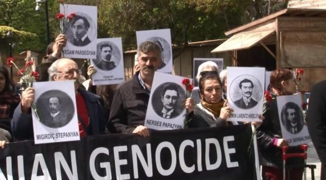 Anma süresince ellerinde karanfiller bulunan ve 1915 olaylarında yaşamını yitirenlerin larını taşıyan eylemciler, üzerinde ‘Ermeni Soykırımı tanı, af dile, tazmin et’ yazılı pankart açtı. Bu sırada anmanın yapıldığı bölgede bulunan ve öğrenci oldukları öğrenilen bir grup slogan attı. ‘Mustafa Kemal’in askerleriyiz, Enver Paşa’nın askerleriyiz sloganları atan grup polisin araya girmesiyle kısa sürede bölgeden uzaklaştırıldı.
