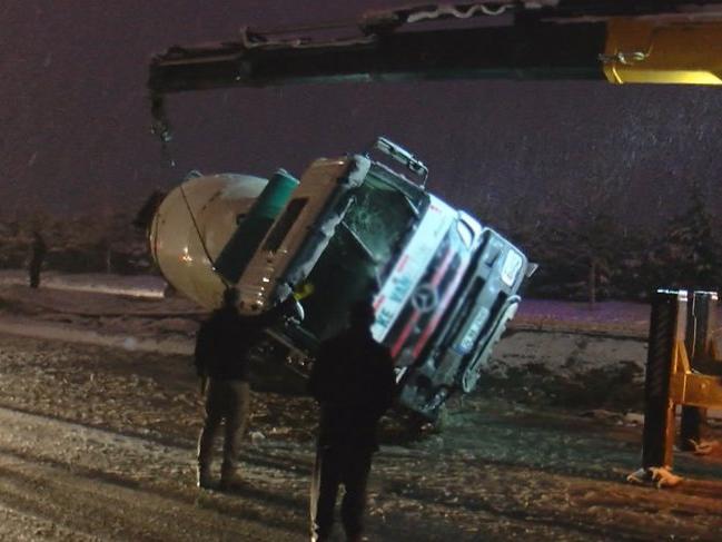 Kaza, akşam saatlerinde Mahmutbey yolu üzerinde meydana geldi. Kar yağışı nedeniyle kayganlaşan yolda sürücüsünün direksiyon hakimiyetini kaybettiği beton mikserinin önce yol kenarında bulunan aydınlatma direğine çarptı, ardından devrildi.