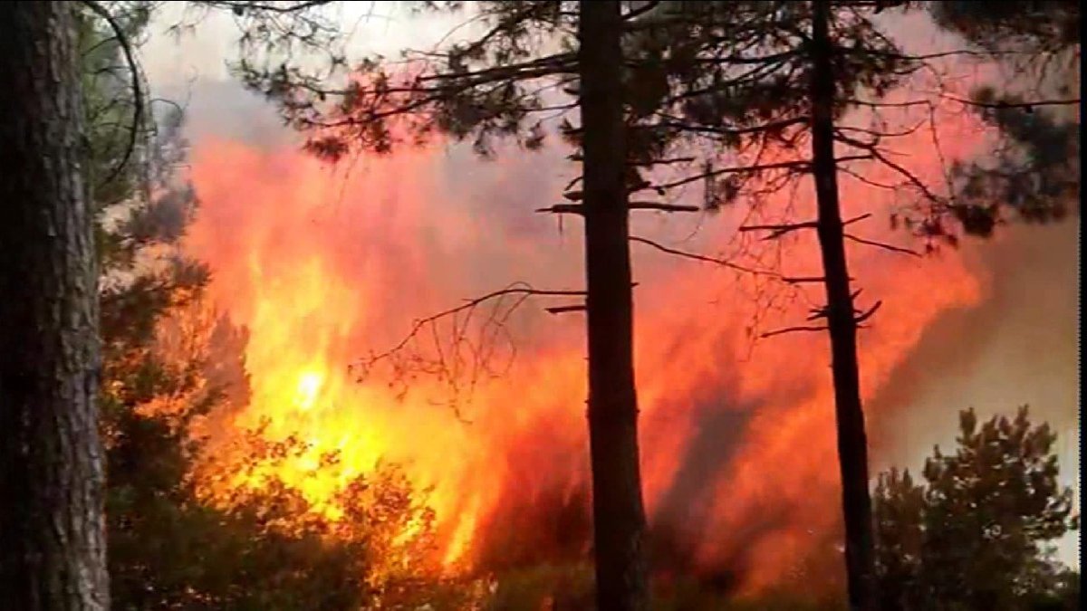 Kontrol altına alınan yangını cep telefonu ile görüntüleyen bir vatandaşın kamerasına, yangının çıktığı bölgeden kaçan iki kişi de yansıdı.