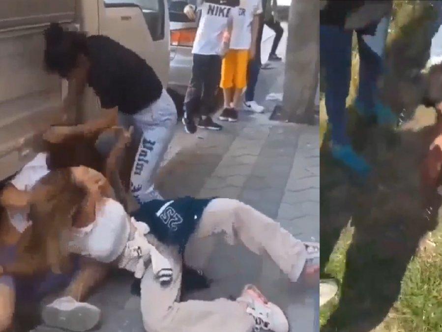İki genç kızın saç saça yumruk ve tekmeli kavgasına o anları izleyen bir başka kişi de dahil oldu. Yaşananlar ise, cep telefonu kamerasına yansıdı.