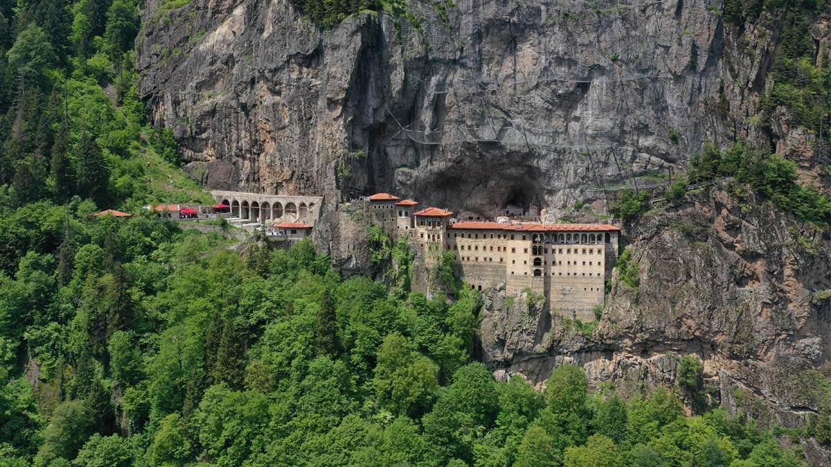 Trabzon'un Maçka ilçesindeki Karadağ'ın Altındere Vadisi'nde 300 metre yükseklikte kayalar oyularak inşa edilen Sümela Manastırı, ziyaretçilerine doğa, tarih ve kültürü bir arada sunuyor.