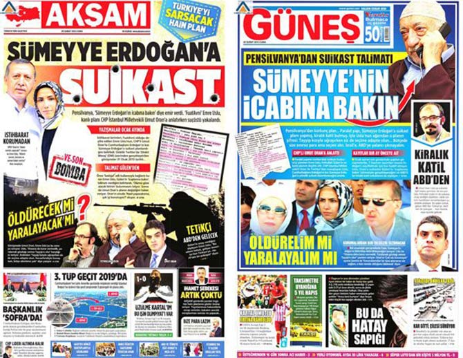 Havuz medyası Akşam ve Güneş'in Emre Uslu ile CHP milletvekilleri Umut Oran ve Akif Hamzaçebi arasında geçtiğini iddia ettiği Sümeyye Erdoğan'a suikast düzenleneceğine yönelik konuşmalar sahte çıktı. Savcılık, Erdoğan'a olan aşkını sık sık dile getiren Ethem Sancak'a ait olan iki gazete için “yayın yoluyla zincirleme hakaret ve iftira” suçlamasıyla toplam 5 ayrı dava açtı.