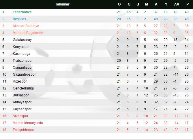 SÜPER LİG 21. HAFTA SONUÇLARI
