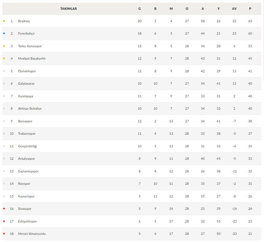 SÜPER LİG 28. HAFTA MAÇ SONUÇLARI VE KALAN MAÇLAR