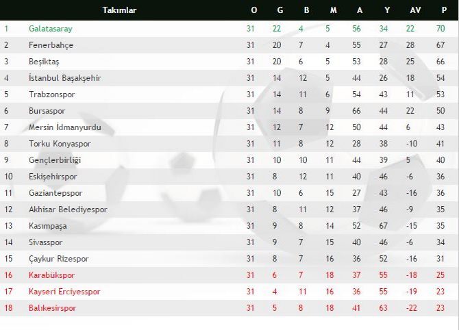 SÜPER LİG 31. HAFTA TOPLU SONUÇLARI