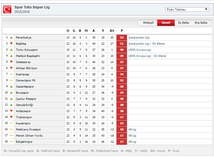 SÜPER LİG PUAN DURUMU