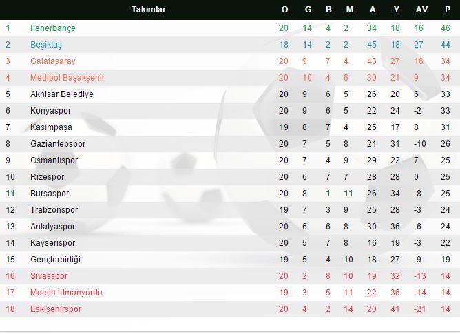 Süper Lig 20. hafta maçları ve programı şu şekilde;