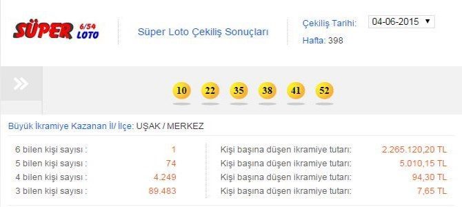 SÜPER LOTO 4 HAZİRAN ÇEKİLİŞİ SONUÇLARI