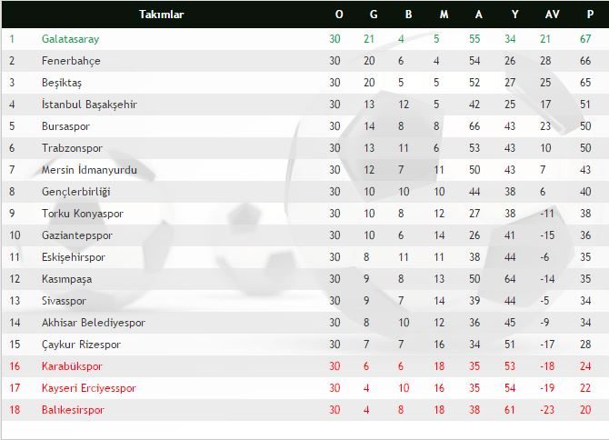 SÜPER LİG 30. HAFTA SONUÇLARI