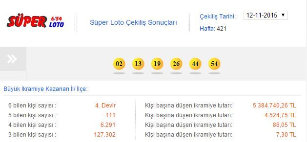 SÜPER LOTO SONUÇLARI 12.11.2015