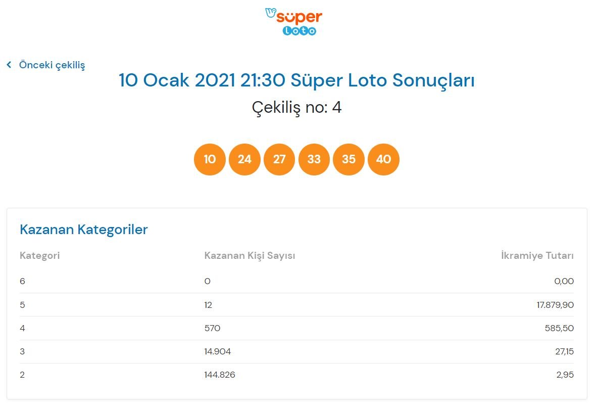 SÜPER LOTO SONUÇLARI 10 OCAK