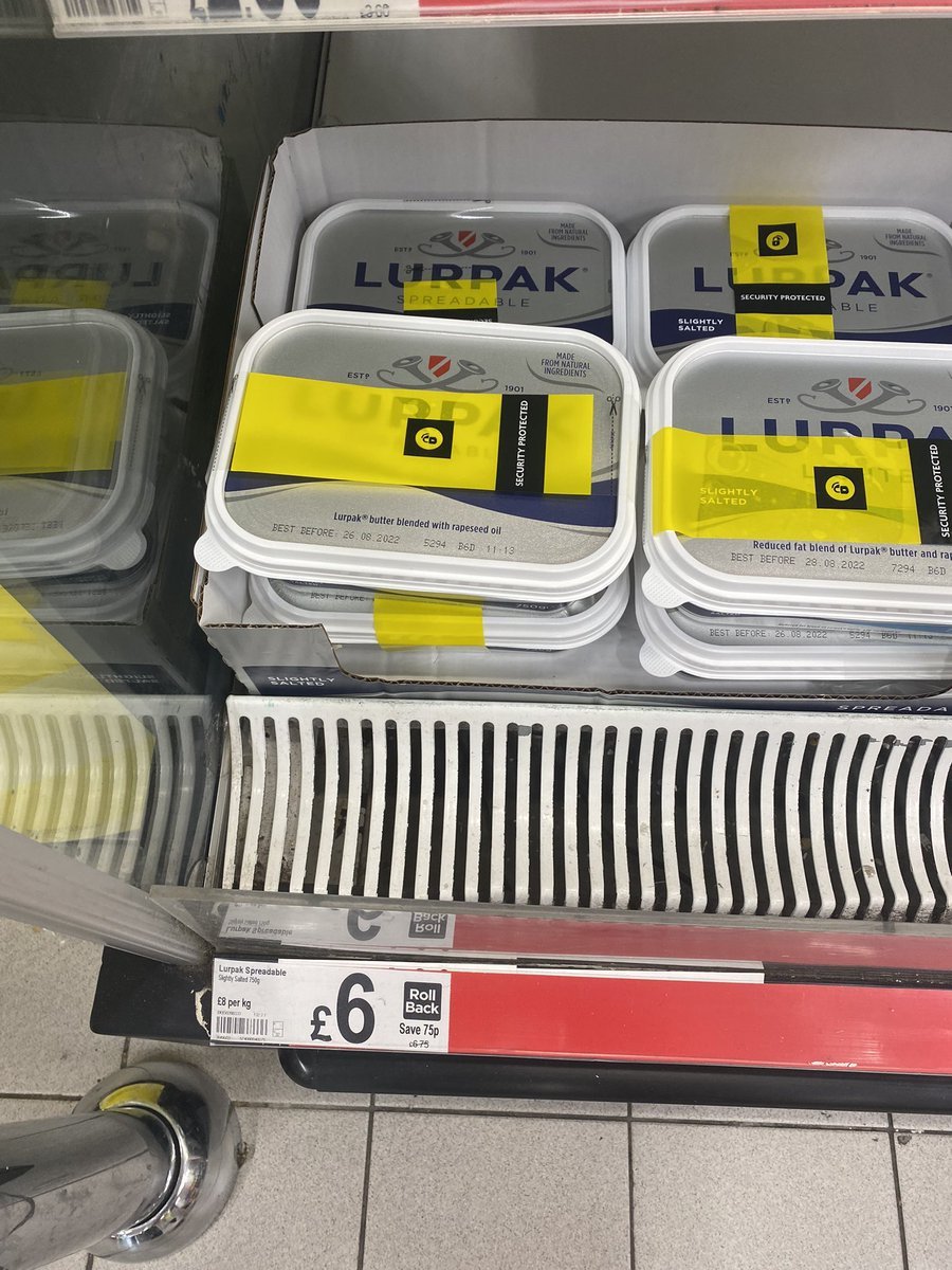 Aldi, Tesco ve Sainsbury's isimli süpermarketlerde son dönemde fiyatların arttığına dikkat çeken Daily Mail'de yayınlanan bir fotoğrafta 3.99 sterline (yaklaşık 81 TL) satılan bir kalıp peynirin etrafına elektronik kelepçe takıldığını aktardı. Gazete, bu fotoğrafın Aldi isimli market zincirinde çekildiğini de belirtti.