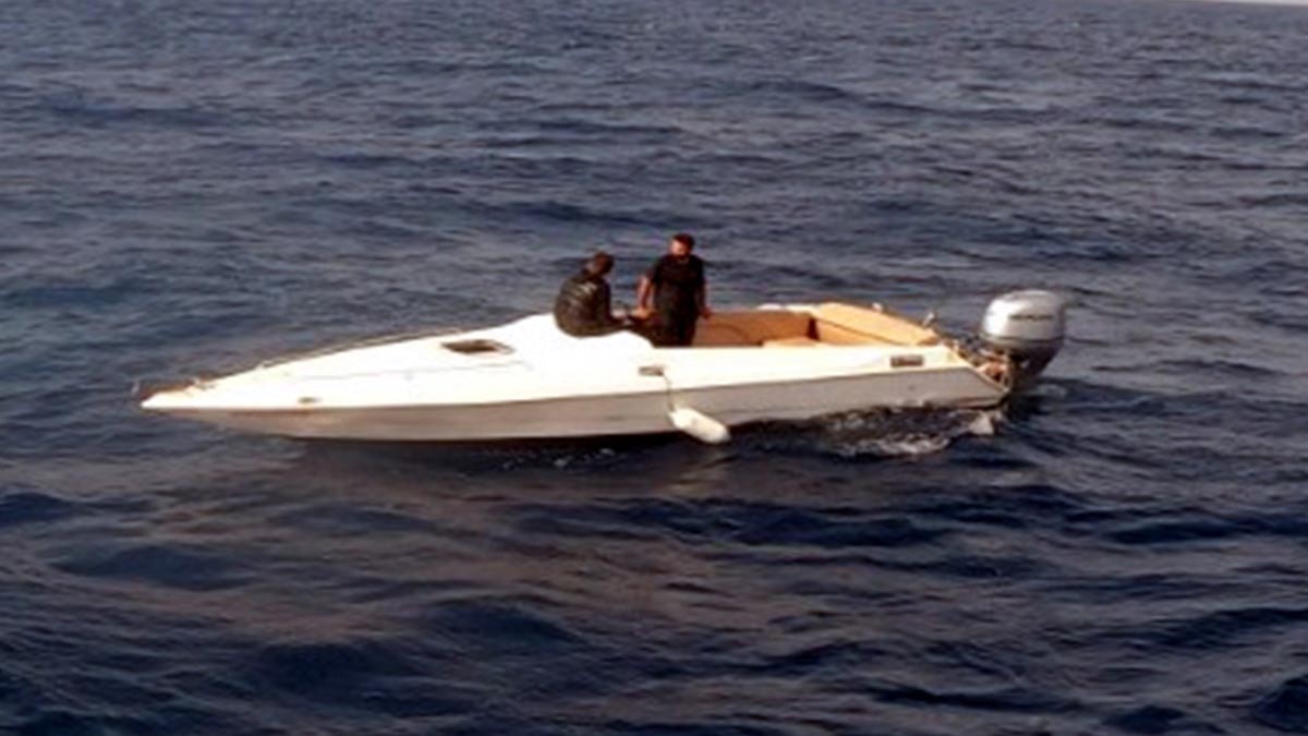 Muğla’nın Bodrum ilçesine bağlı Akyarlar Mahallesi açıklarından Yunanistan’a ait İstanköy (Kos) adasına yasa dışı yollardan geçmeye çalışan sürat teknesi TCSG 302 bordo numaralı sahil güvenlik botu tarafından durduruldu.