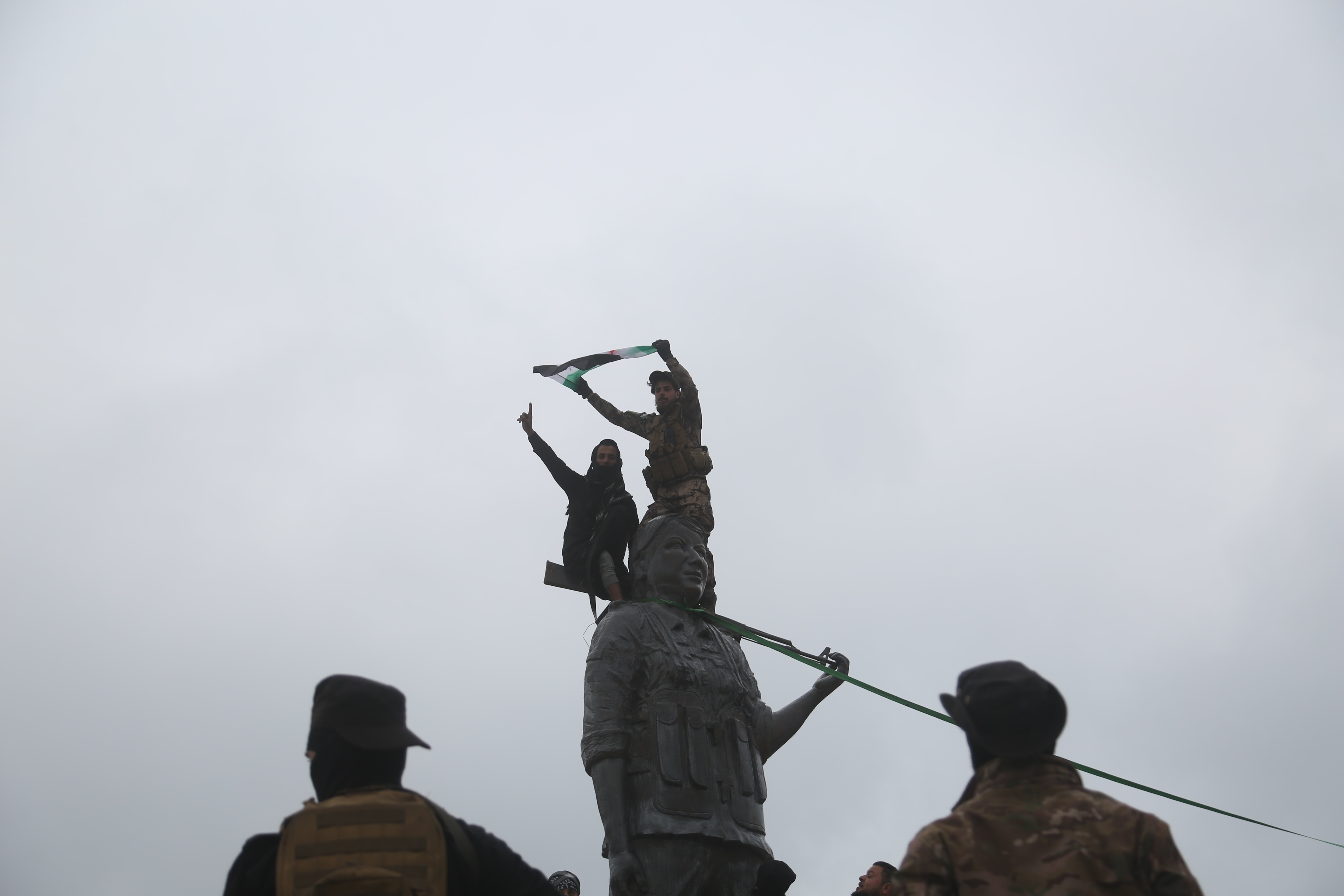 Suriye halkı, SDG'nin çekildiği bölgelerde örgüte ait sembolleri birer birer yıktı. Sözde bayraklar indirildi, heykeller devrildi.