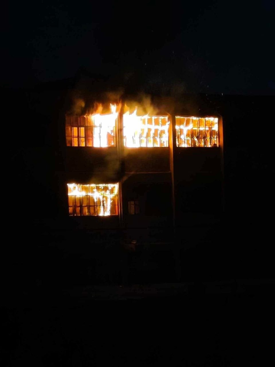 Geri çekilen SDG'nin yaktığı bir okul binası
