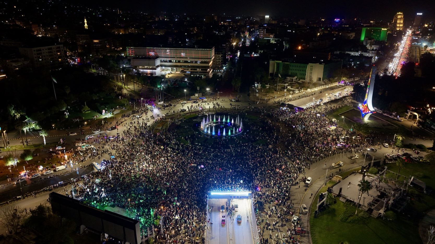 Suriye’nin başkenti Şam’da binlerce kişi, 61 yıllık Baas rejiminin sona ermesinin birinci yıl dönümü dolayısıyla sokaklara döküldü. Araç konvoyları oluşturan kalabalıklar, Suriye bayraklarıyla şehir turu atarak kutlama yaptı.