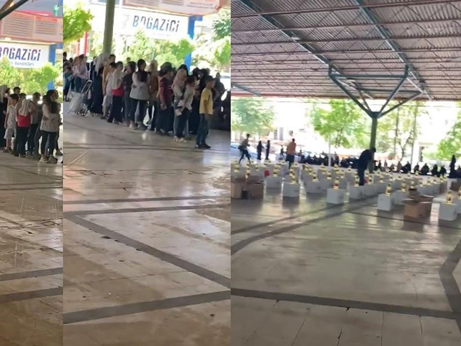 Sosyal medyaya yansıyan görüntülerde, Şehitkamil ilçesinde bir yardım kuruluşu tarafından yapıldığı belirtilen gıda kolisi dağıtımı için çok sayıda Suriyeli, dağıtım yerine geldi.